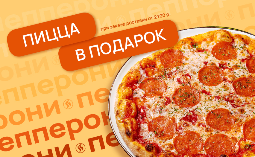 Заказ от 2100₽ = Пицца «Пепперони» в подарок!